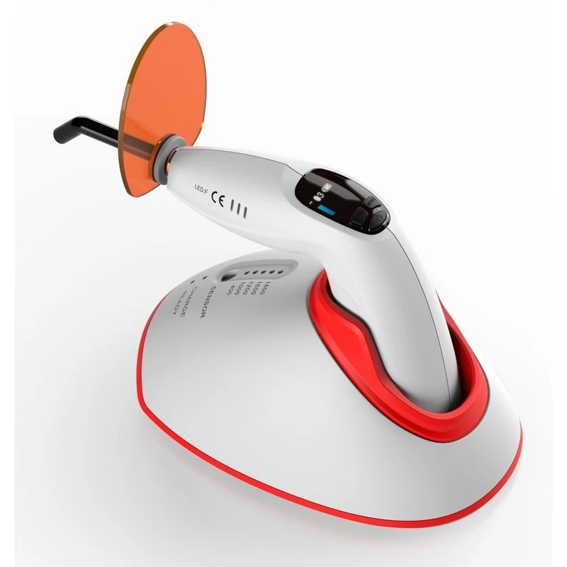 لایت کیور Led F دارای لایت متر داخلی بر روی پایه شارژ ، طول موج 385nm-515nm و شدت کیور 1600mW/cm2 تا 1800mW/cm2 ، کیورینگ در ۳ ثانیه (دارای دو شدت اشعه برای جلوگیری از شیرینکیج و همچنین کیورینگ عمق کامپوزیت) و به همراه سه مد کاری Ramp، Full Power، Pulse که زمان کاری لایت کیور از 3 ثانیه تا 40 ثانیه قابل تغییر اشاره کرد.