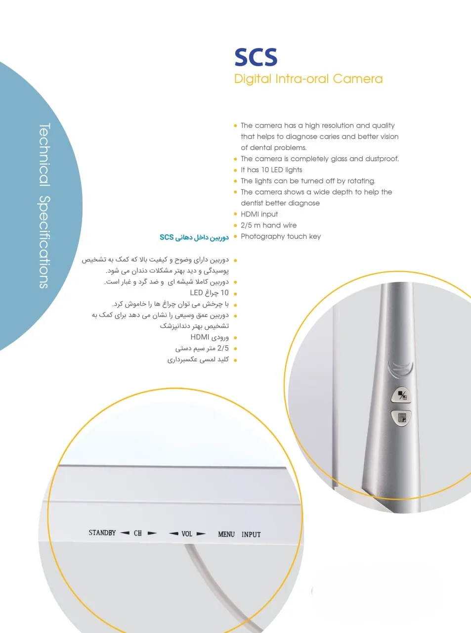 تی وی و مانیتور دوربین داخل دهانی SCS جایگزینی برای آینه های دندانپزشکی است که با داشتن مانیتور بزرگ، دید کاملی را نسبت به دندان در اختیار دندانپزشکان قرار میدهد.